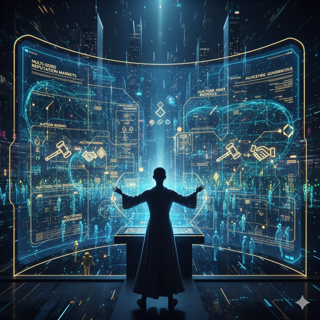 Scaffolding of Trust : Reimagining Economics and Governance for the Agentic Web Swaminathan Gurumurthy, J Zico Kolter, Zachary Manchester To be submitted to ICLR 2026 Blogs [1] [Blog] We discuss the economic and governance tools and frameworks required for the emerging AI-driven internet. We propose various tools and mechanisms to this end such as multi-sided reputation markets, agentic marketplaces, attribution-led pricing, auction-first markets, and a framework for polycentric governance and the tools required. |